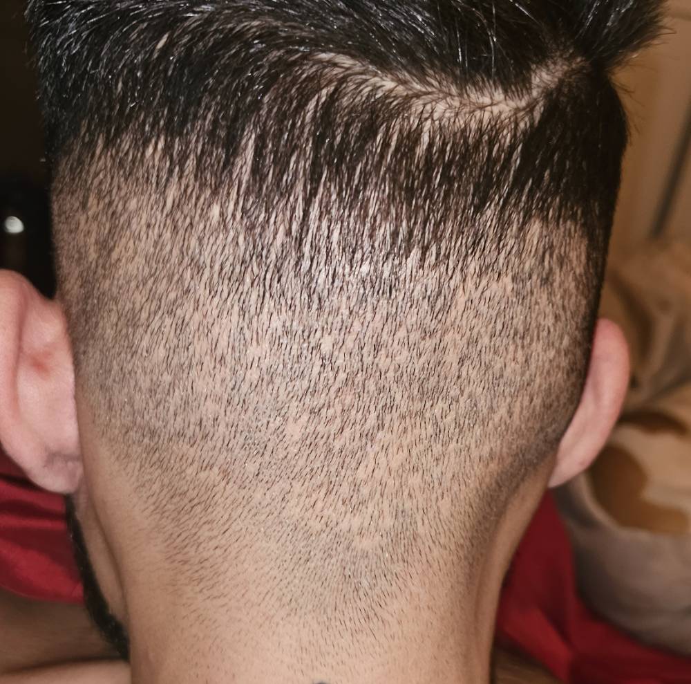 La donor è abbastanza provata ma non disastrata per fortuna. Concordo con quanto proposto da Wong e detto dagli altri utenti. L'hairline, per quanto non sia malissimo, vi assicuro che il diradamento mi crea molto fasridio. Come noti sulla tempia destra, si notano meno capelli rispetto a dietro (sono molto disanti tra di loro) creando quell'effetto rado.. e io vorrei chiudere proprio le tempie e i laterali, in modo che se sposto i capelli dal lato apposto non si crei quel vuoto che mi da fastidio. Quindi, tu, guardando la foto della donor a occhio e croce, confermeresti che appare pressoché buona? Secondo me ancora può dare la mia donor nonostante siano stati estratti 5mila uf, ho chiesto un parere a wong e secondo lui pure, secondo voi pure, quindi mi tranquillizza ciò.. poi il dr.Wong. ha detto che con 500uf totali riuscirebbe a coprire bene tutte quelle zone rade, e se nel caso non riuscirebbe potremmo estrarne ancora.. quindi io vorrei capire e avere una stima, so che cambia da persona a persona, ma secondo voi il massimo estraibile quanto ammonta? Io credevo che erano sui 3mila unità follicolari, ma io li ho superati e ancora sto pressoché bene, si notano solo alcuni whitedots, ma non sono per niente fastidiosi. |